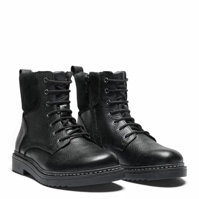 Snører støvlen i sort glat læder er med lynlås i siden så den er nem at tage på og af.